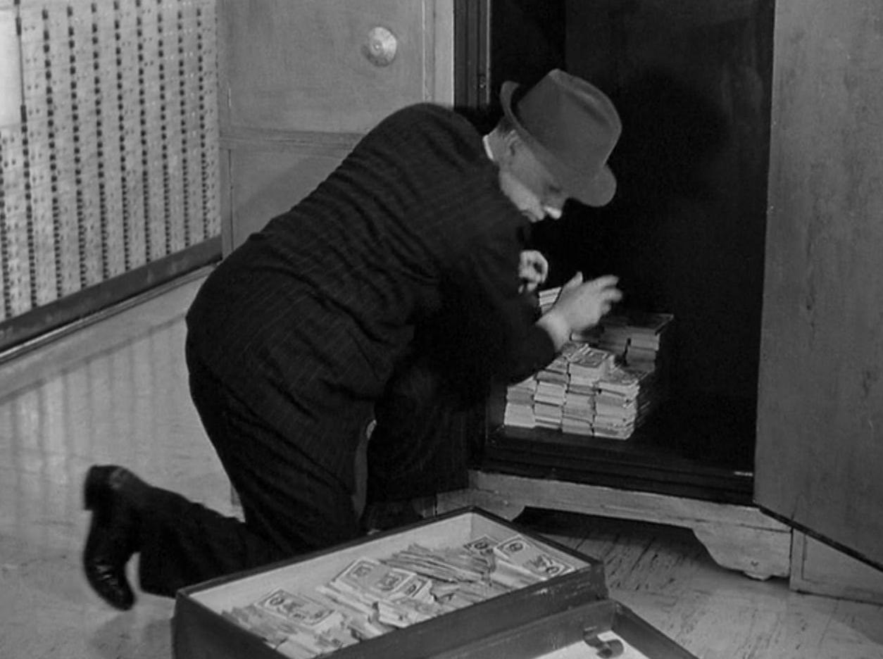 Again, I’m just having some fun here. I revisited The Steel Trap after hearing Foster Hirsch (author of the recent book Hollywood and the Movies of the Fifties) on a recent episode of the NitrateVille Radio podcast where Hirsch mentioned the film. Don’t get me wrong, I like the picture, but not as much as Hirsch. The Steel Trap contains plenty of suspense, but (at least for me) too many coincidences and easy escapes from tough situations. But it’s a thriller worth checking out. Your score on the Creep-o-Meter may vary.
