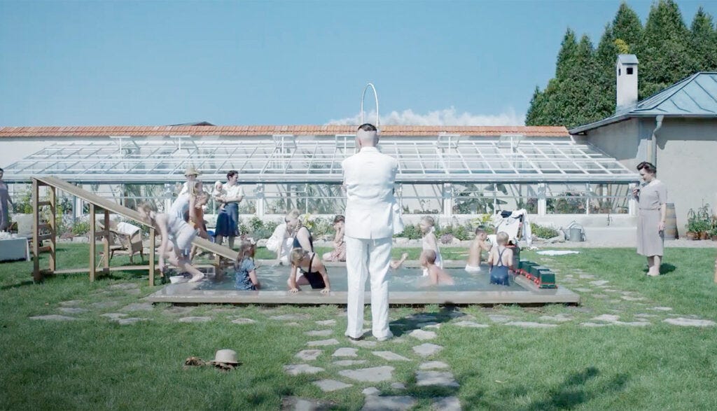 Taking liberties from the 2014 novel by Martin Amis, The Zone of Interest follows Rudolf Höss (Christian Friedel), commandant of the Auschwitz concentration camp in Poland during World War II. Höss, his wife Hedwig (Sandra Hüller), and their children live outside the camp in a picturesque home surrounded by a massive yard, a modest pool, and towering walls. The walls must be high to prevent the Höss family from witnessing the atrocities occurring literally in their own backyard.